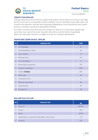 larıyla birlikte sahipsiz hayvanlar için daha modern, sağlıklı ve konforlu yaşam alanları oluşturul- mektedir. Hayvanlardan insanlara veya hayvanlara bulaşabilecek zoonoz hastalıklara karşı gerekli