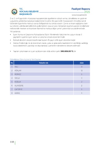 Mahallelere Göre Açılan İş Yeri Sayıları doğrultusunda ve iyi mali yönetim ilkelerine uygun olarak kullanıldığını ve iç kontrol sisteminin yasalık