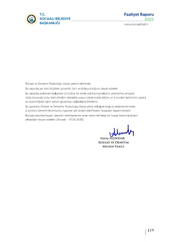 Bu raporda yer alan bilgilerin güvenilir, tam ve doğru olduğunu beyan ederim.
