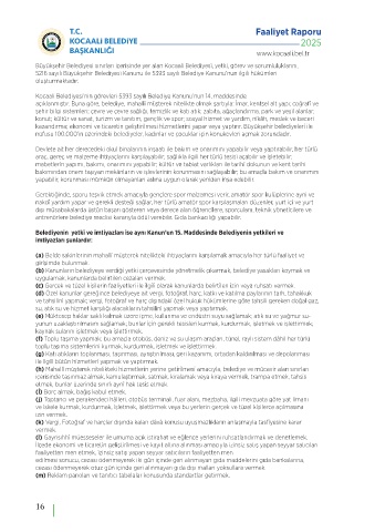 cezası ödenmeyerek otuz gün içinde geri alınmayan gıda dışı malları yoksullara vermek. Madde 16- Belediyenin kamu hizmetine ayrılan veya kamunun yararlanmasına açık,