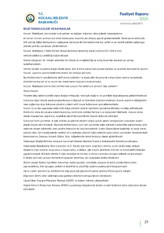 Vatandaşın bilgilendirilmesi amacıyla kurumsal internet sitesinde 9 adet e-belediyecilik hizmeti sunulmuştur.