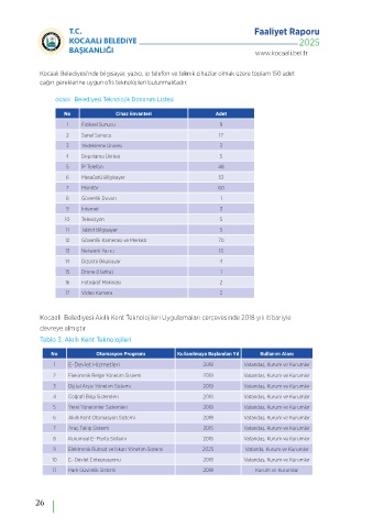 Kocaali Belediyesi Akıllı Kent Teknolojileri Uygulamaları çerçevesinde 2018 yılı itibariyle yapılması.