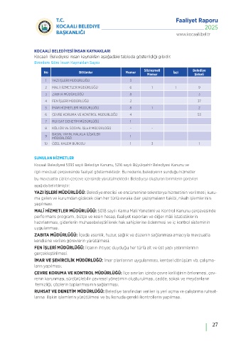 bu mevzuatta çizilen çerçeve içerisinde yürütülmektedir. Belediyeyi oluşturan birimlerin görevleri