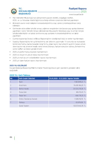 No Gelir Çeşidi (Tahsilat) 01.01.2025 - 31.12.2025 Yapılan Tahsilat 9 KURUMLARDAN VE KİŞİLERDEN ALINAN 12.600.000,00 15.384.059,48