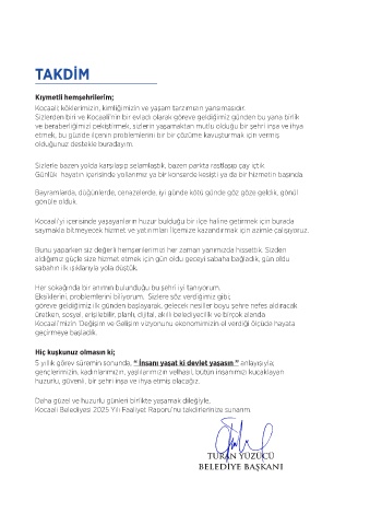 Kocaali Belediyesi 2025 Yılı Faaliyet Raporu’nu takdirlerinize sunarım.