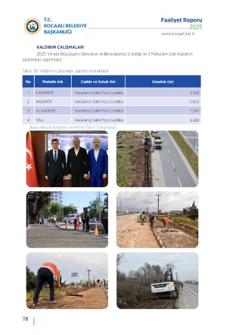 2025 Yılında Büyükşehir Belediye ve Belediyemiz iş birliği ile 3 Mahallemizde Kaldırım tamamlanmıştır. Gerçekleştirilen bu çalışmalarla yağmur suyu drenajı sağlanarak yol altyapısı