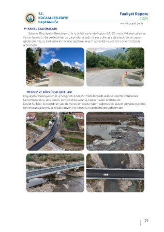 KALDIRIM ÇALIŞMALARI Sakarya Büyükşehir Belediyemiz ile iş birliği içerisinde toplam 24.150 metre V-kanal çalışması
